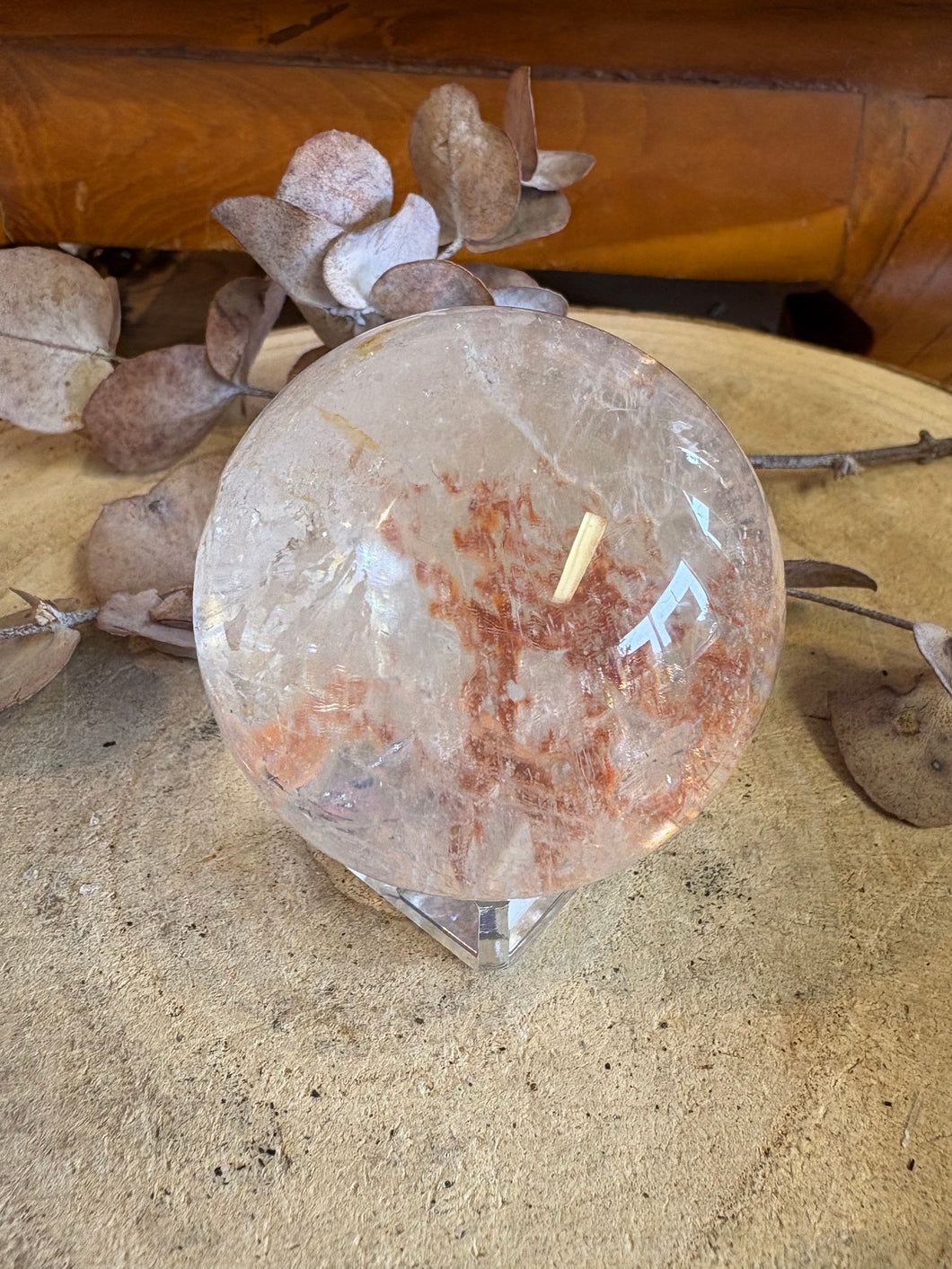A stunning Quartz sphere with so much clarity and light, plus a lovely Hematoid inclusion and a wonderful rainbow.