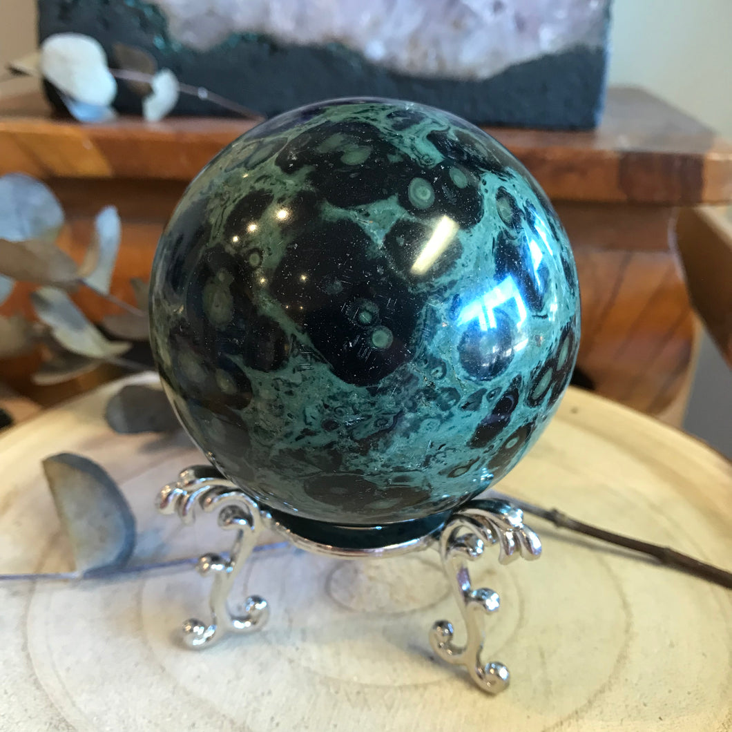I couldn’t resist this slightly larger sized, striking sphere of Kambaba Jasper. It’s a real beauty!
